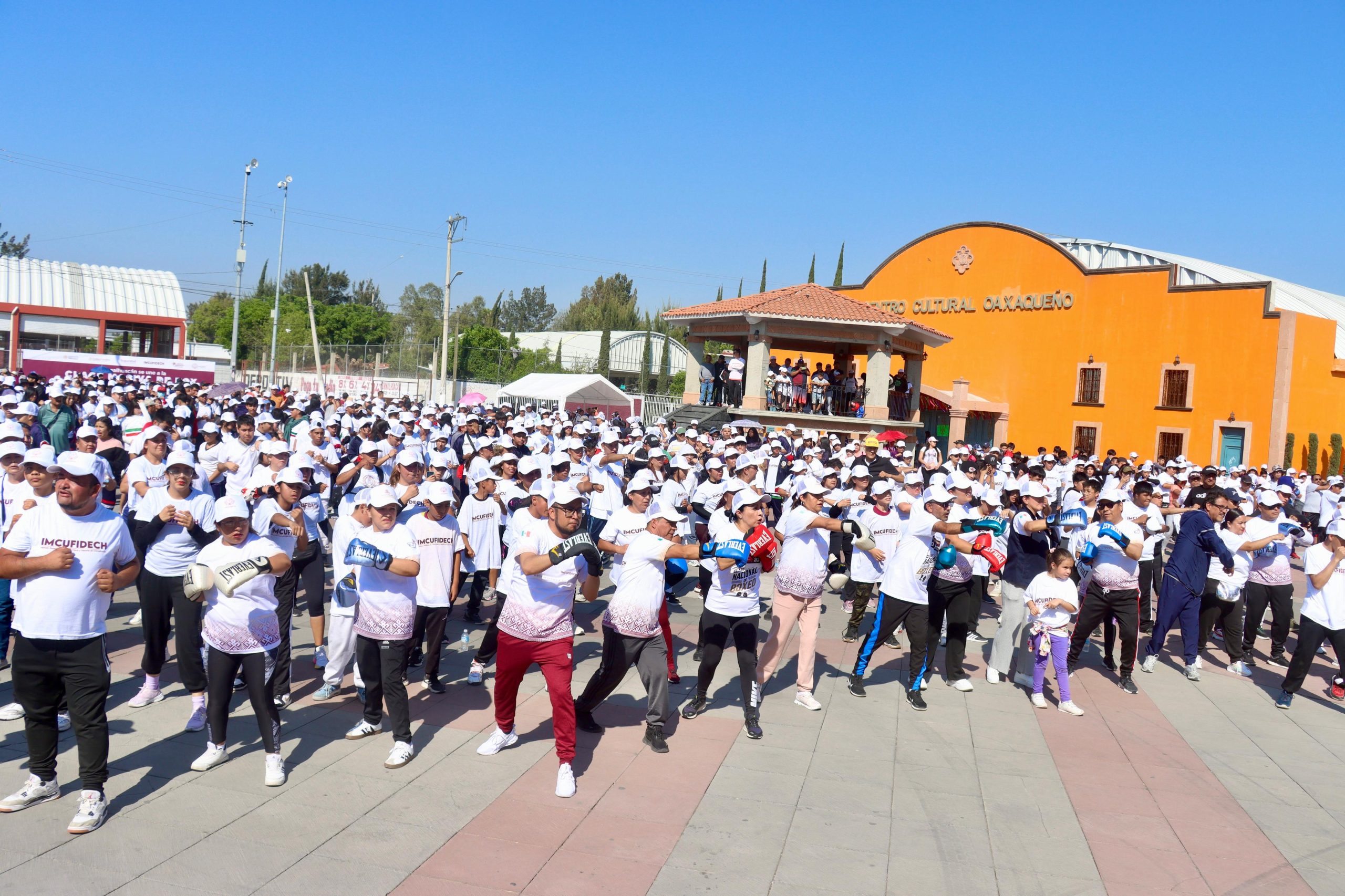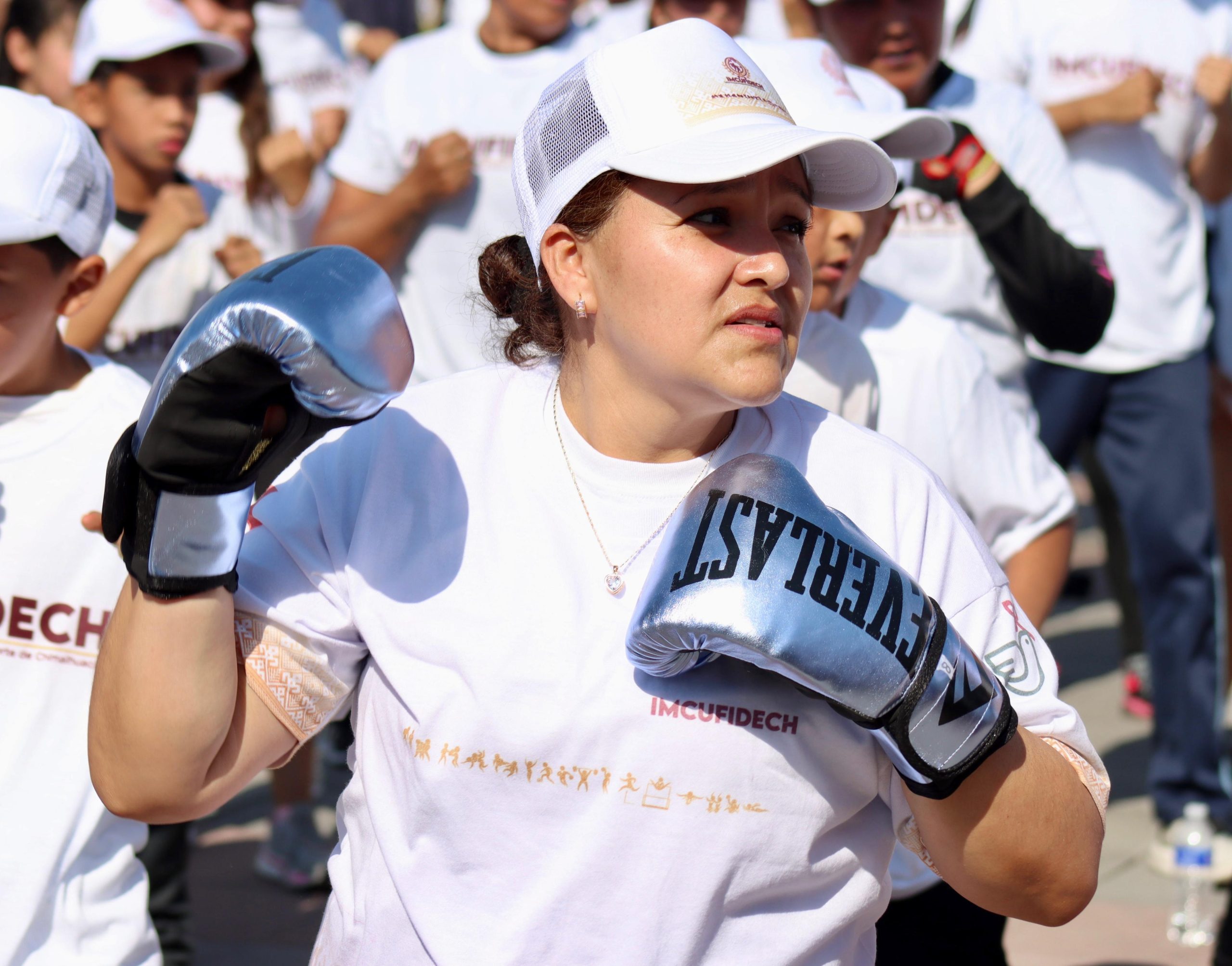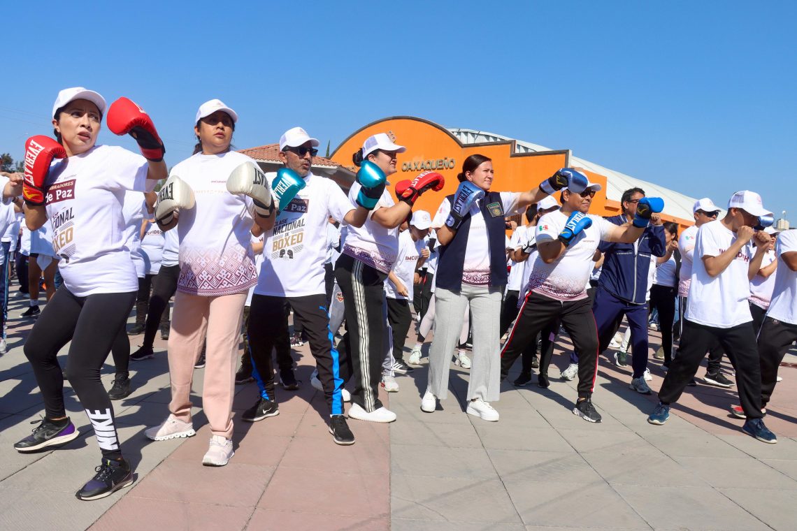 En la Plaza Cívica Benito Juárez, cientos de personas se reunieron para participar en una gran clase masiva de box, un evento promovido por la presidenta de la República, Dra. Claudia Sheinbaum, que motivó a todo el país a unirse a esta jornada deportiva.