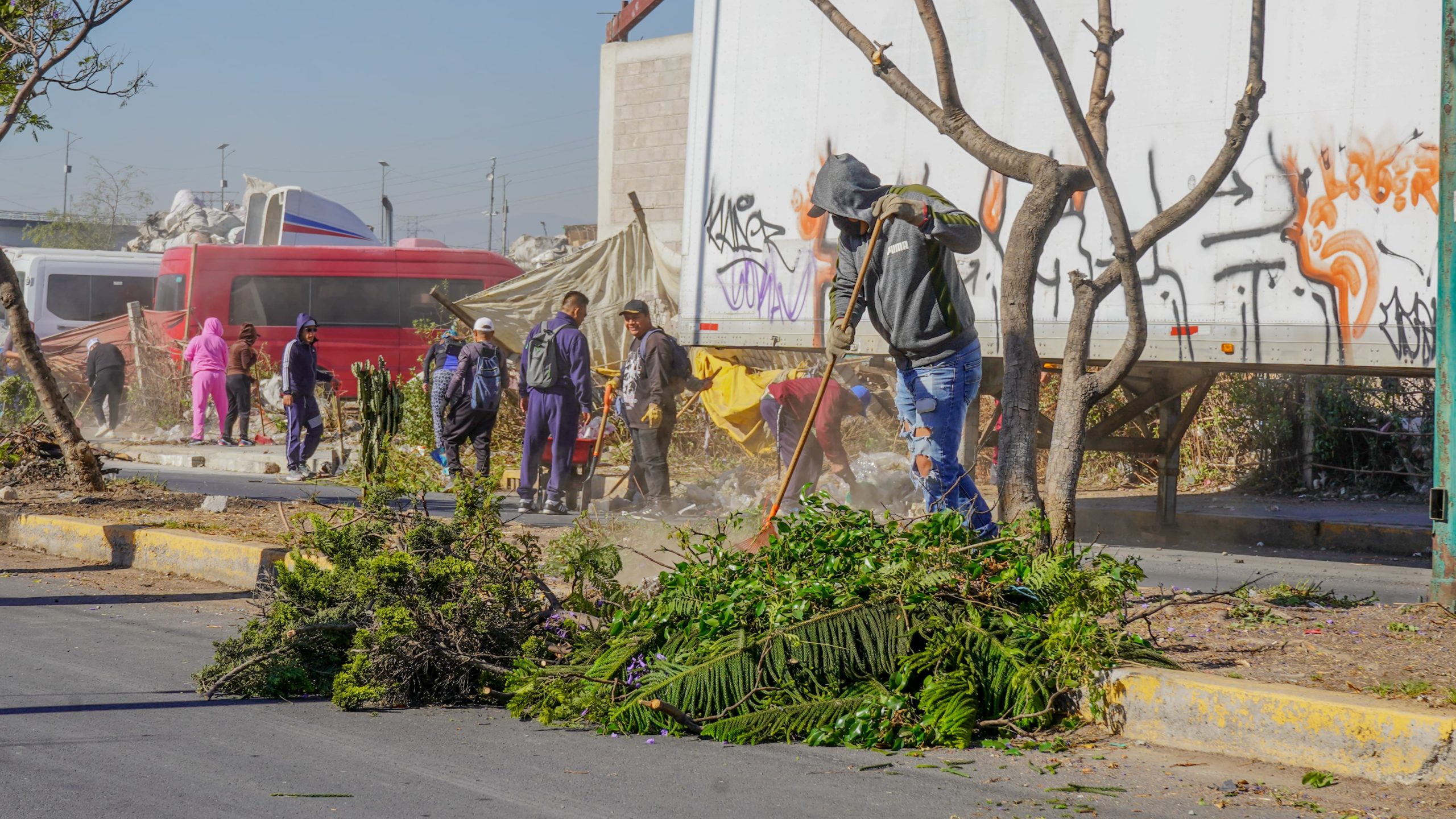 Con el objetivo de avanzar en la mejora y recuperación de los espacios públicos en el municipio, este sábado se llevó a cabo una jornada integral de servicios públicos en la Avenida Ejido Colectivo, esquina con Bordo de Xochiaca hasta Avenida Manuel Alas. Durante esta actividad, se recolectaron 10 toneladas de cascajo, 20 toneladas de basura y cerca de 100 llantas abandonadas, contribuyendo significativamente a la transformación del entorno.