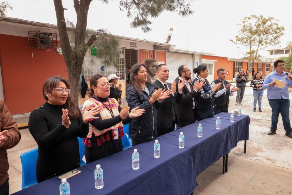 Con una inversión destinada a optimizar los espacios educativos, la presidenta Xóchitl Flores Jiménez inauguró dos arcotechos que beneficiarán a más de mil estudiantes y docentes. El primero de ellos fue develado en la Escuela Secundaria Oficial 516 “México”, una obra que, de acuerdo con la presidenta, permitirá a más de 500 alumnos y maestros realizar actividades físicas, recreativas y culturales sin verse afectados por las condiciones climáticas. El Mtro. Luis Auro Abel Nicolás Jiménez, director de la institución, expresó el agradecimiento de la comunidad estudiantil por esta significativa mejora.