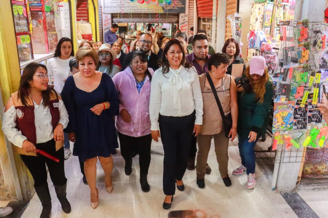 La presidenta municipal de Chimalhuacán, Xóchitl Flores Jiménez, entregó la obra de rehabilitación de los pisos interiores del Mercado Tierra y Libertad, ubicado en el barrio Fundidores, la cual impactará positivamente y de manera directa a mil 242 habitantes, incluyendo locatarios y residentes de los barrios Fundidores, Carpinteros y Luis Cordoba.