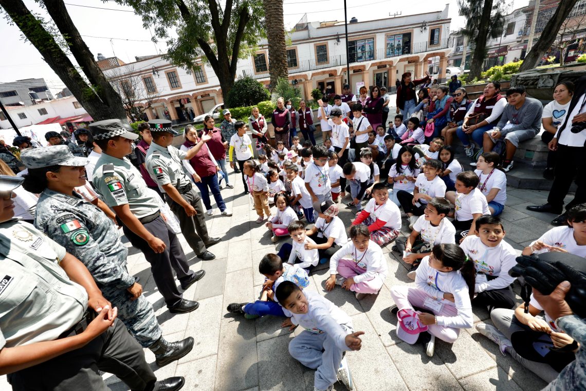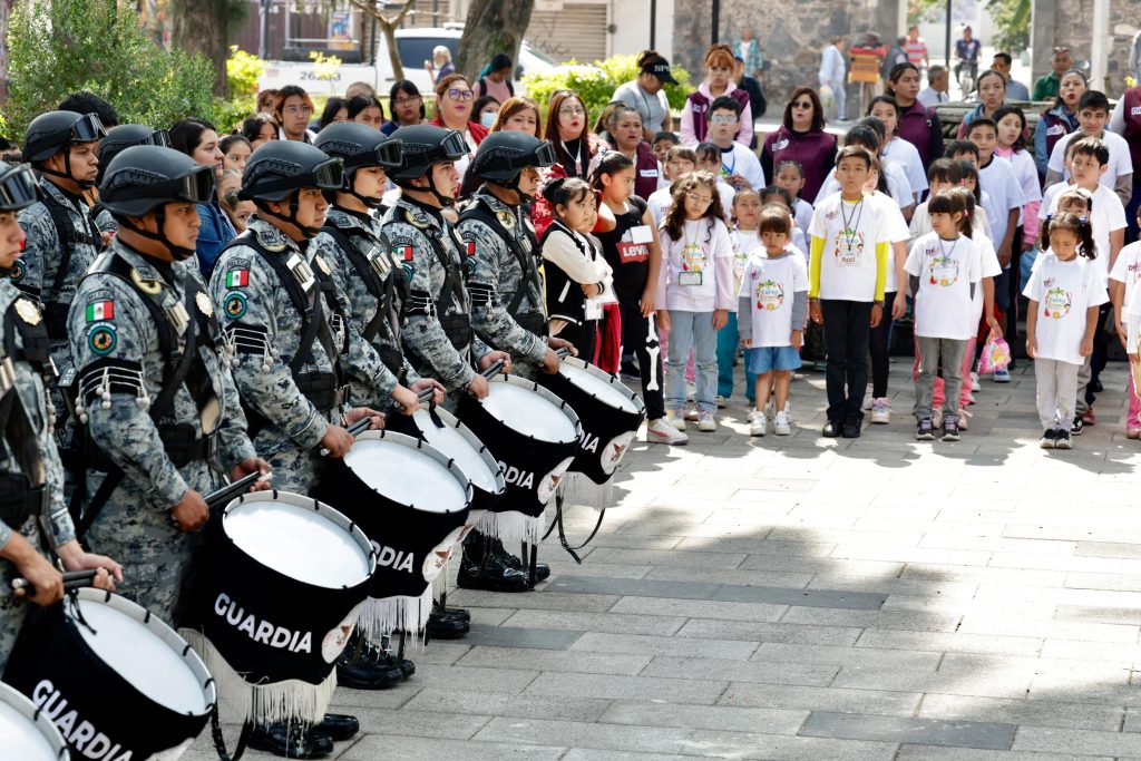 Esta actividad también contó con la presencia de la Banda de Guerra de la Guardia Nacional –quien entonó el Himno Nacional y el del estado– cuyos integrantes también platicaron con niñas y niños respecto a las características y cualidades de sus instrumentos, como redoblantes y trompetas, para adentrar a los pequeños en el mundo de la música.