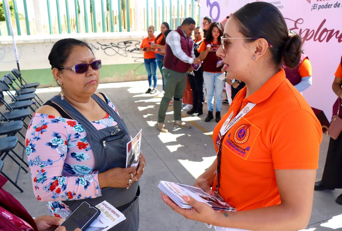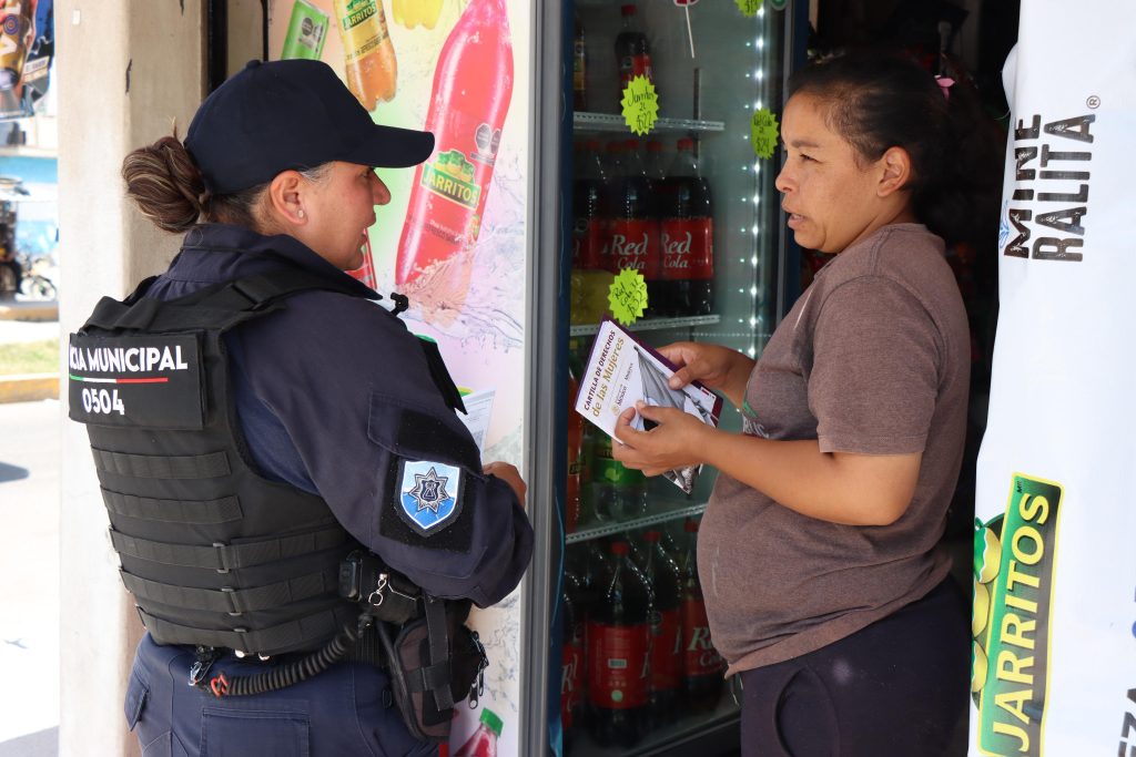 Durante el recorrido, brigadas visitaron a vecinos y locatarios para informar sobre los servicios que ofrecen las instancias municipales y estatales y para entregar números de contacto que permitan reportar situaciones de violencia de género. La directora de la Mujer, Daniela Clavel Vera, destacó que estas acciones se complementan con la entrega de la Cartilla de los Derechos de las Mujeres, la cual reconoce libertades fundamentales como la educación, la libre expresión y el derecho a una vida libre de violencia.