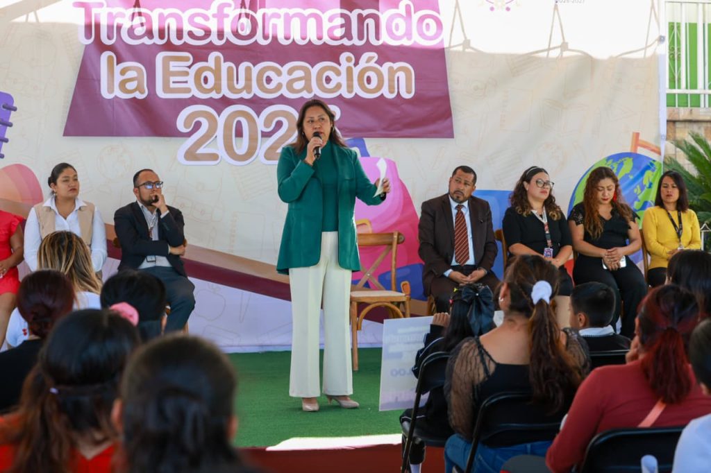 Durante la jornada, la presidenta municipal entregó de manera simbólica el programa a un alumno representante de cada grado, acompañada de la directora de educación, Aíra Negrete, así como de los directores de los planteles y miembros del H. Cabildo.