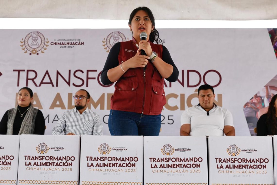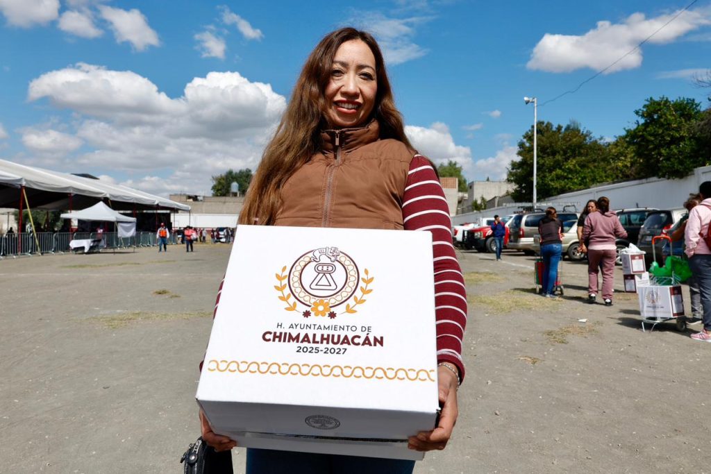 Con la finalidad de continuar fortaleciendo el bienestar de las familias chimalhuaquenses, la presidenta de Chimalhuacán, Xóchitl Flores Jiménez, entregó 2,091 canastas alimentarias del programa municipal “Transformando la Alimentación” en el Deportivo La Hormiga. Este es el cuarto día consecutivo de entregas del programa municipal con el que se espera llegar a 12 mil familias vulnerables en una semana.