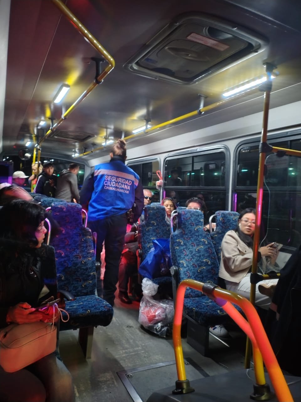 Con el objetivo de prevenir y reducir los robos, así como salvaguardar la integridad de los usuarios en esta temporada, la Dirección General de Seguridad Ciudadana y Tránsito Municipal de Chimalhuacán implementa operativos de seguridad en el transporte público.