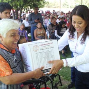 Como parte de la remodelación, embellecimiento y dignificación de la Plaza “Ignacio Zaragoza”, de la Cabecera Municipal, la Alcaldesa de Chimalhuacán, Xóchitl Flores Jiménez, entregó seis módulos de boleo a lustradores de calzado