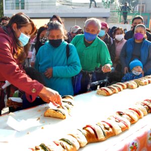 • TRADICIONAL PARTIDA DE ROSCA DE REYES EN LA PLAZA DE LA IDENTIDAD DE CHIMALHUACÁN